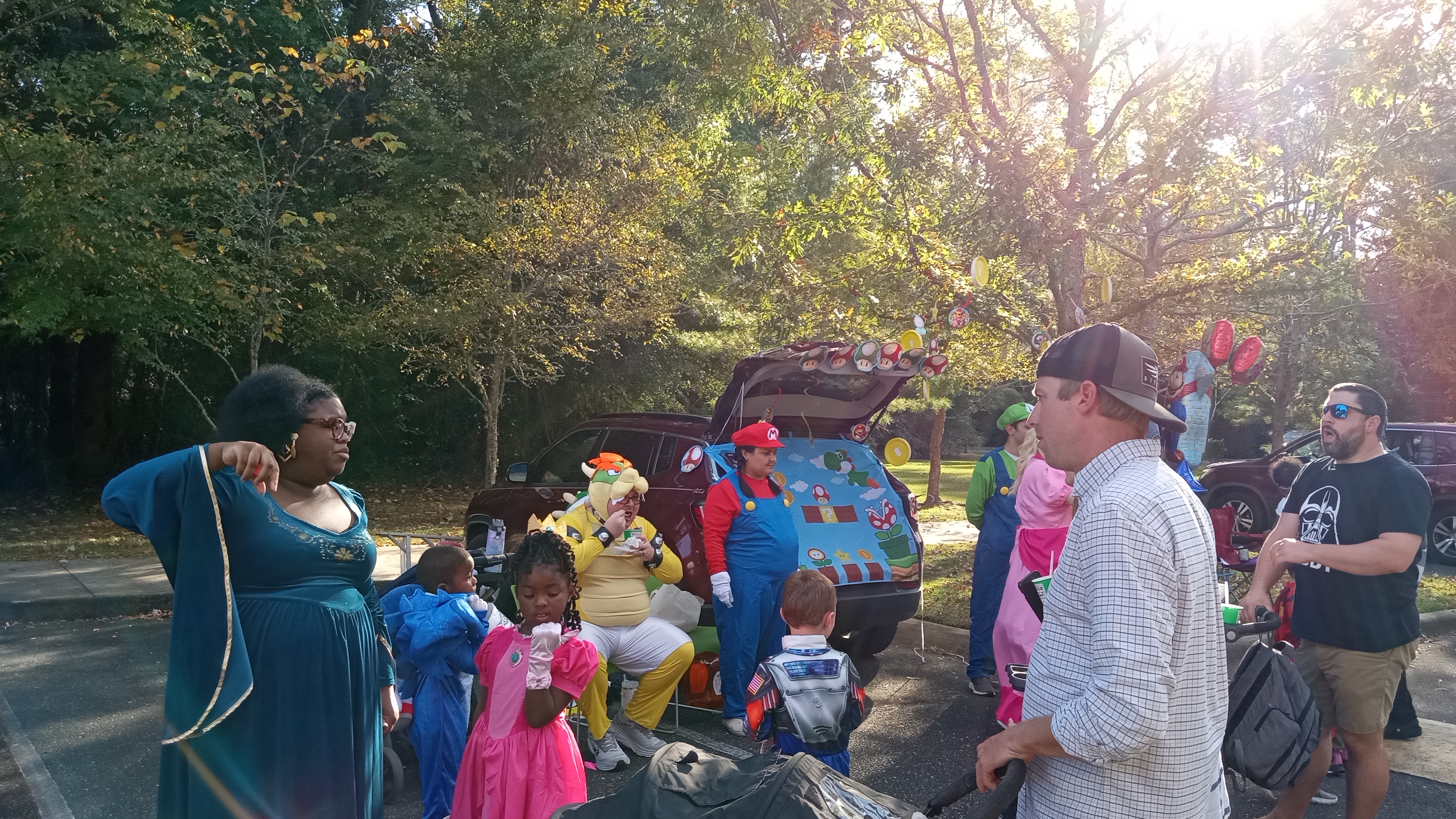 할리퀸? 차 트렁크 장식도 장식이지만 아이들 분장 보는 재미도 크다