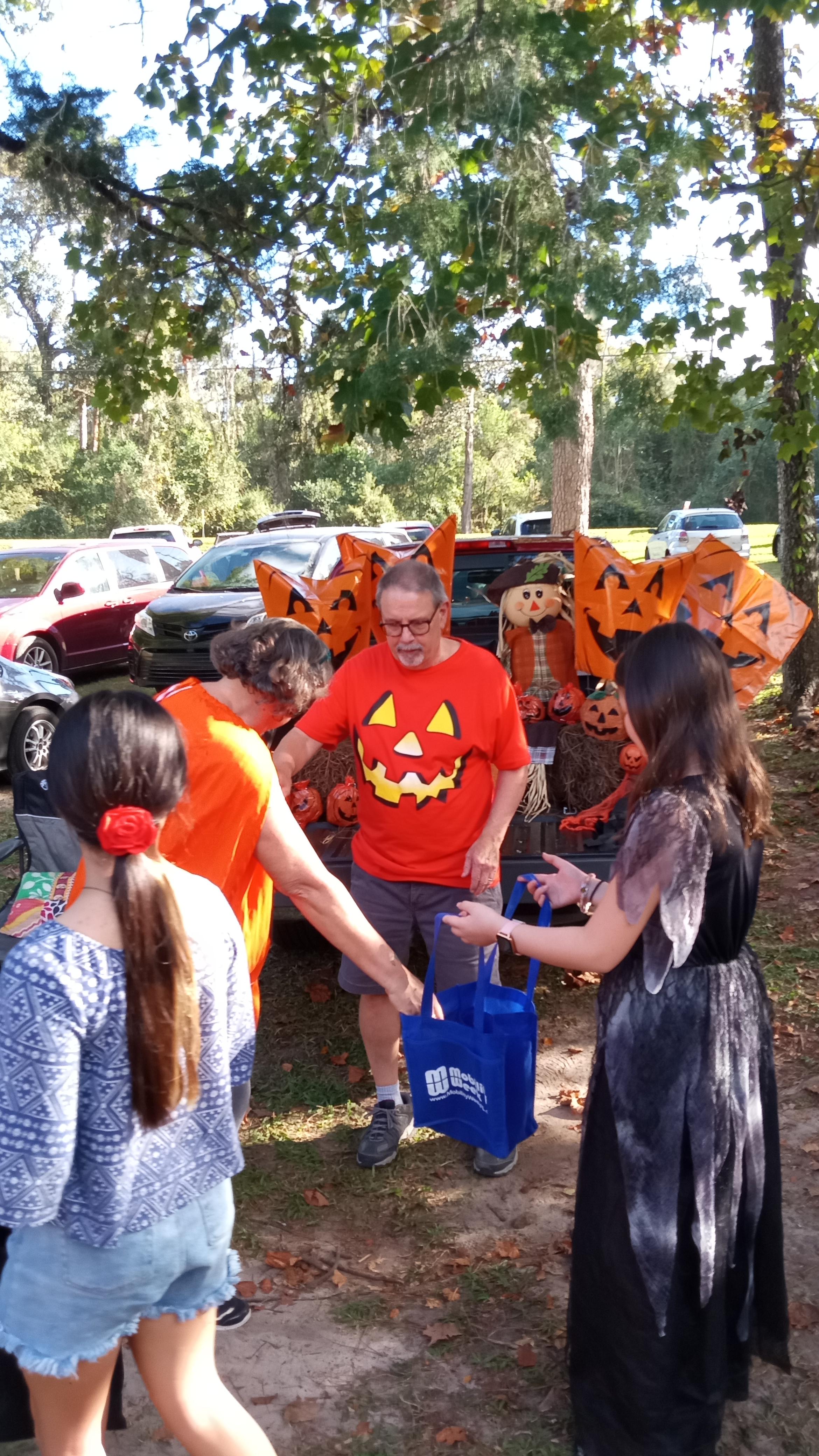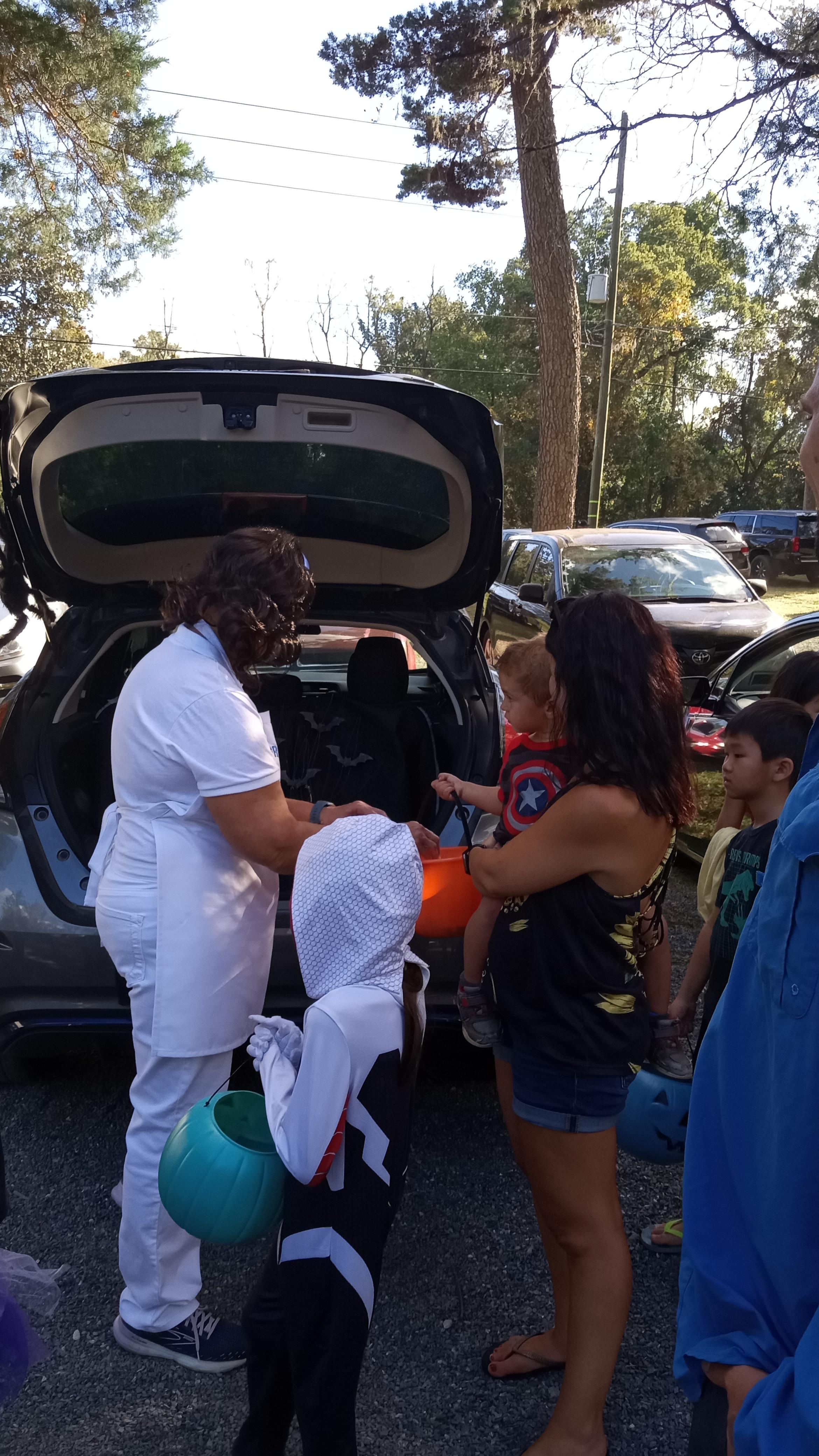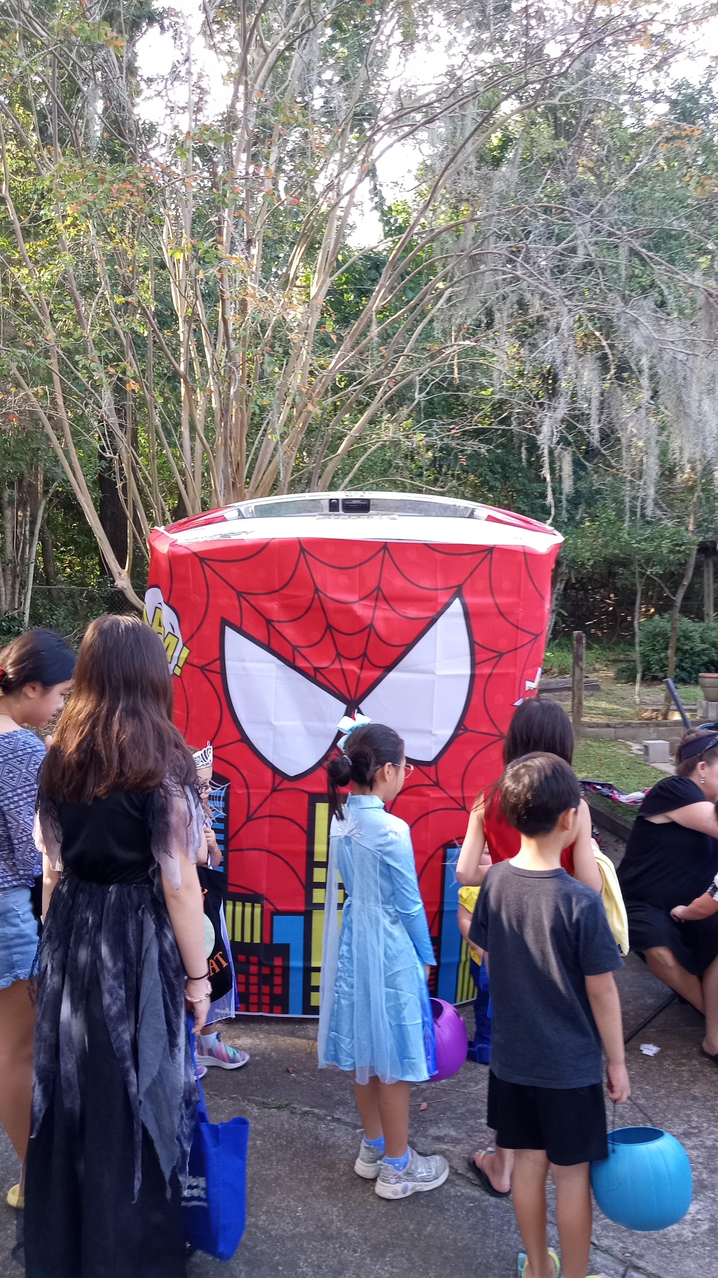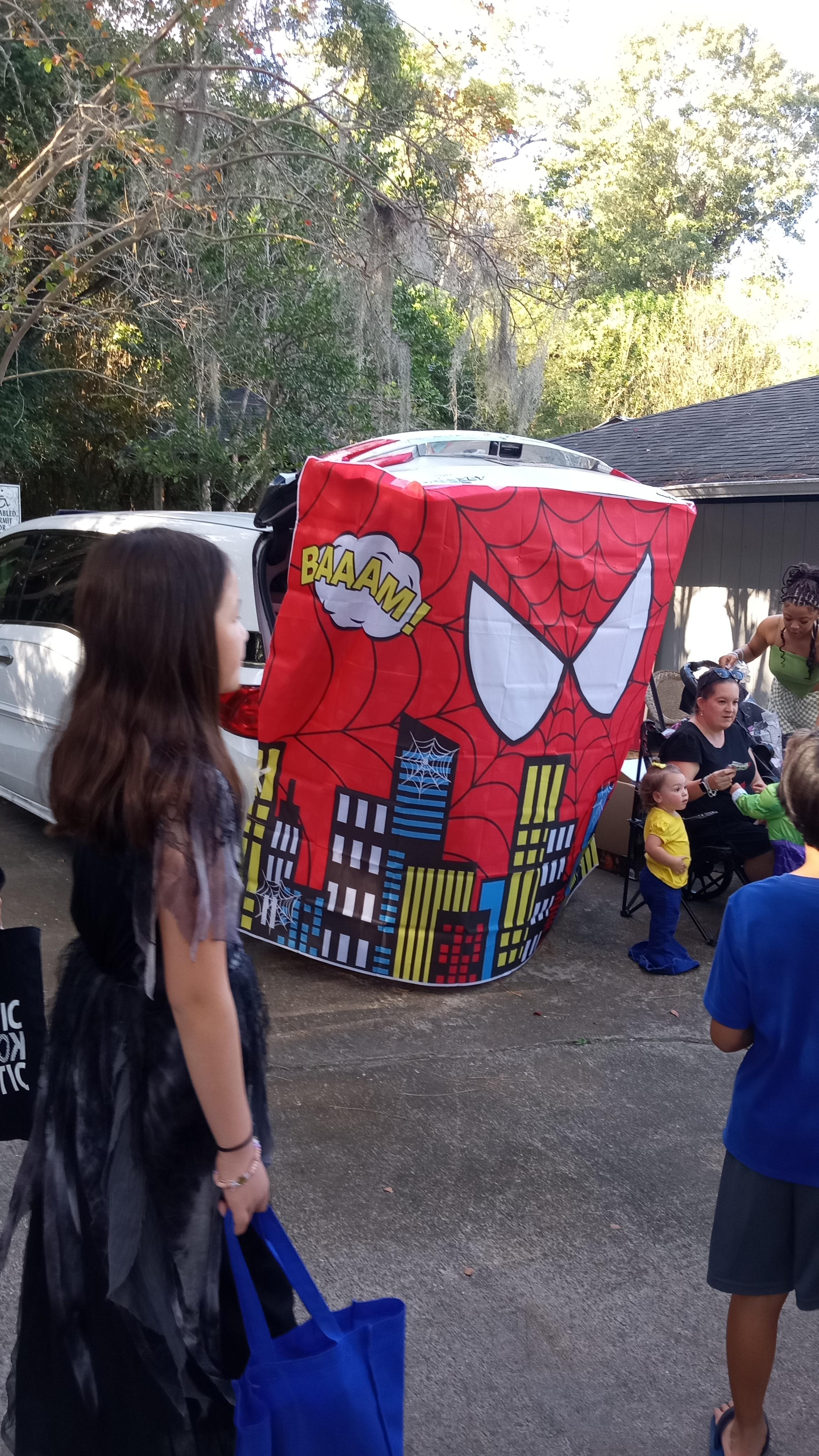 트렁크 오알 트릿 Trunk or Treat 행사장 입구, 고장이 났는지 흐물흐물 제대로 서지 못하던 장식.