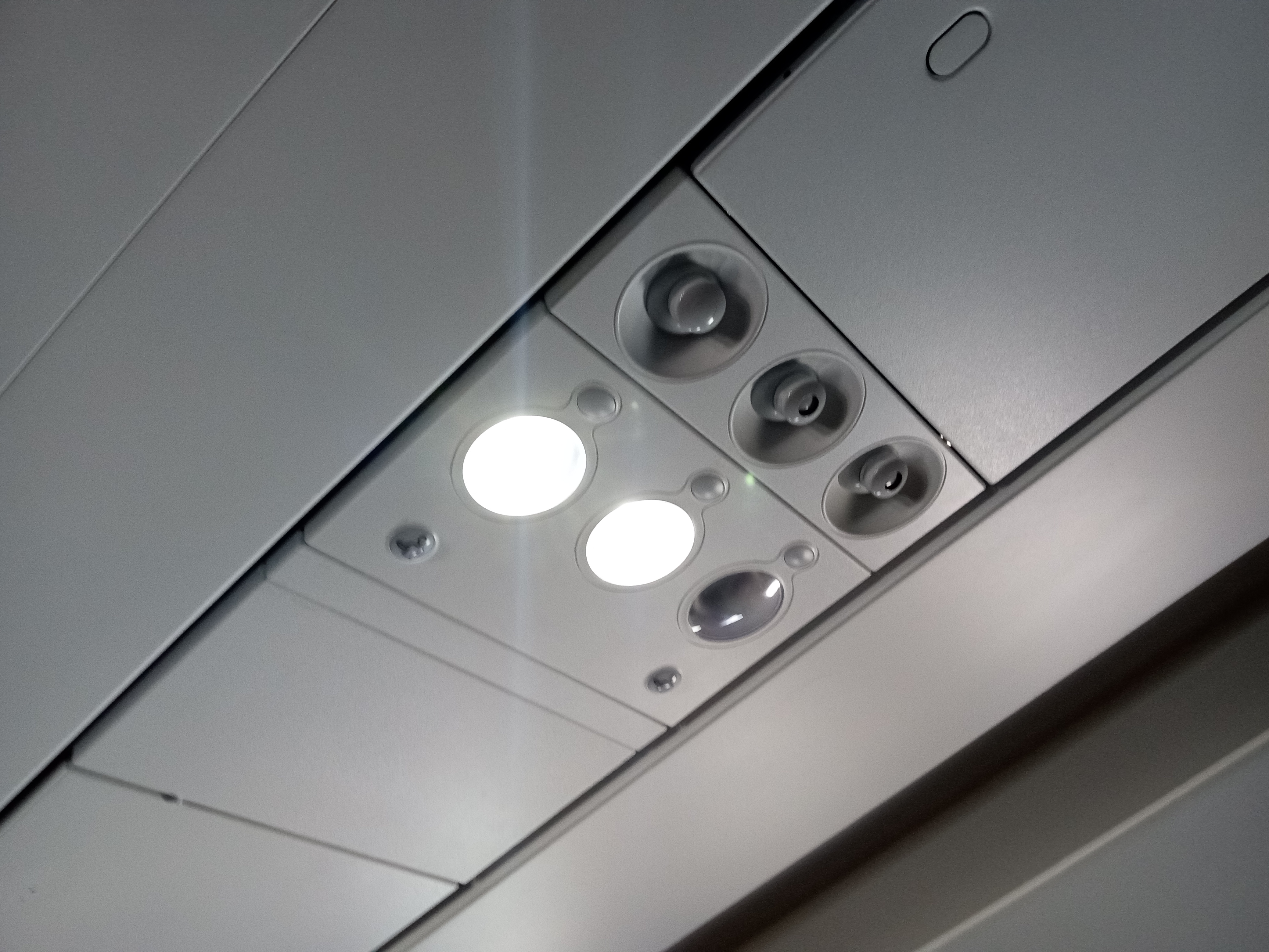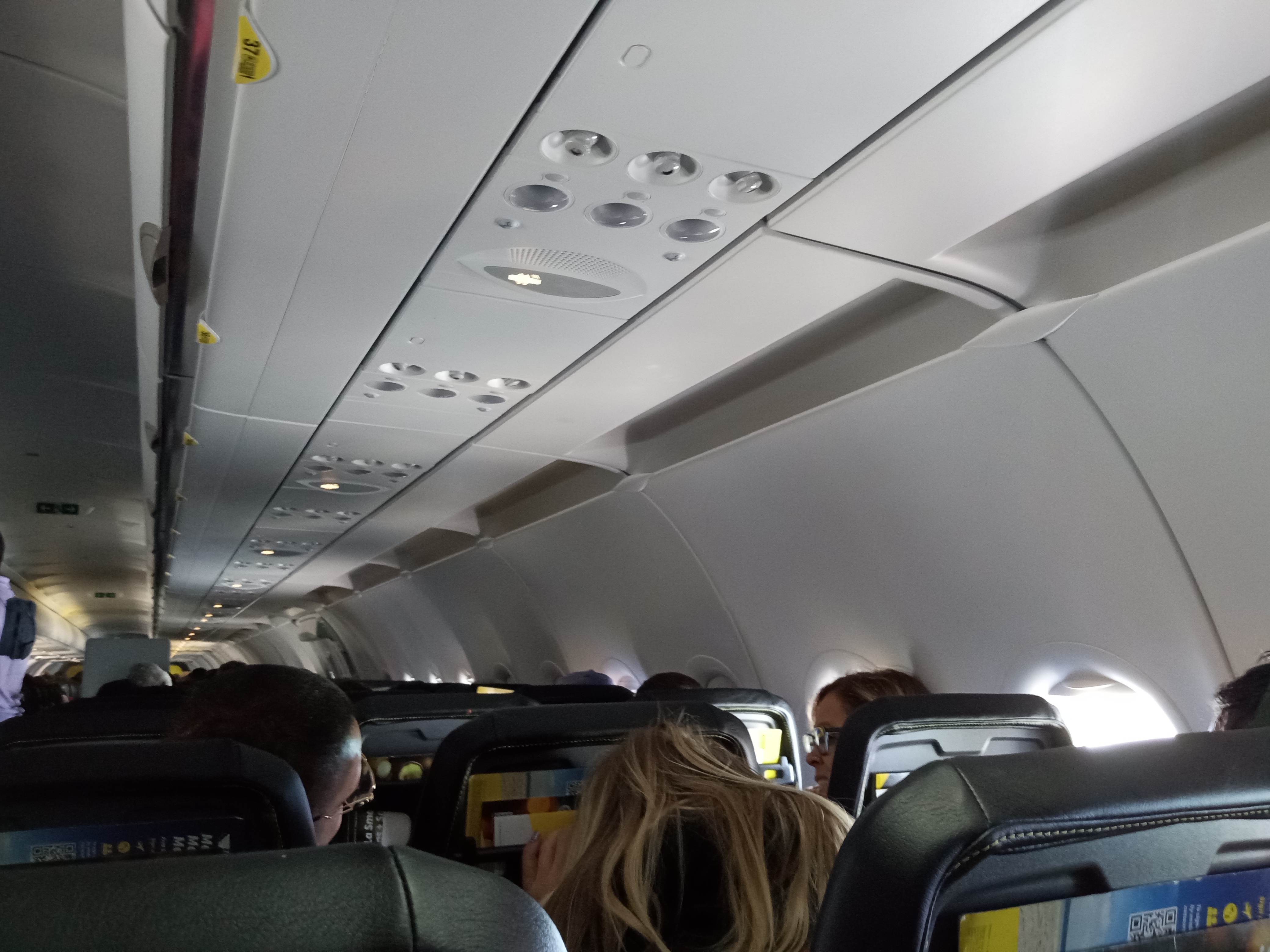 좌석끼리 간격은 위의 사진에 담긴 것처럼 한뼘 좀 넘는 정도. 젯블루에 비하면 한참 좁았지만 퍼스널 아이템 들어가기에 문제 없고 다리 뻗기도 가능.